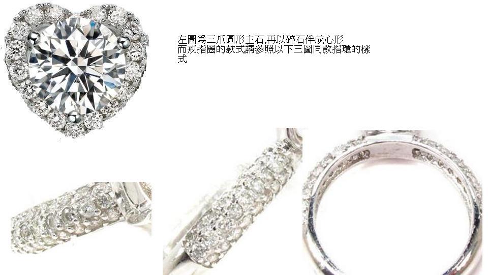 己有1卡主鑽,想訂做18k的戒指,請問碎石連手工共多少﹖ 以下有三款,請分別報價,謝謝﹗