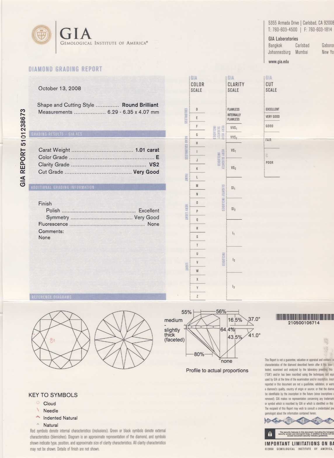 GIA 1.01ct E VS2 VG EX VG N $50000