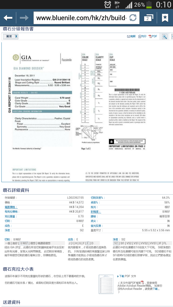 Gia 0.70份  E SI2 3EX NONE $25700