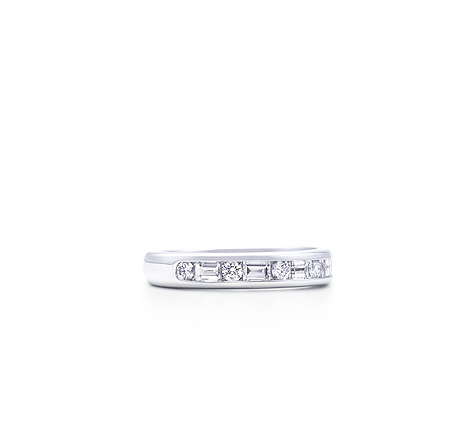 with a half circle of round brilliant(around 6 pcs.) and baguet (around 5 pcs.) diamonds in platinum(Total約65分); 3mm wide. (although its 碎石 hope can hv E-G col)