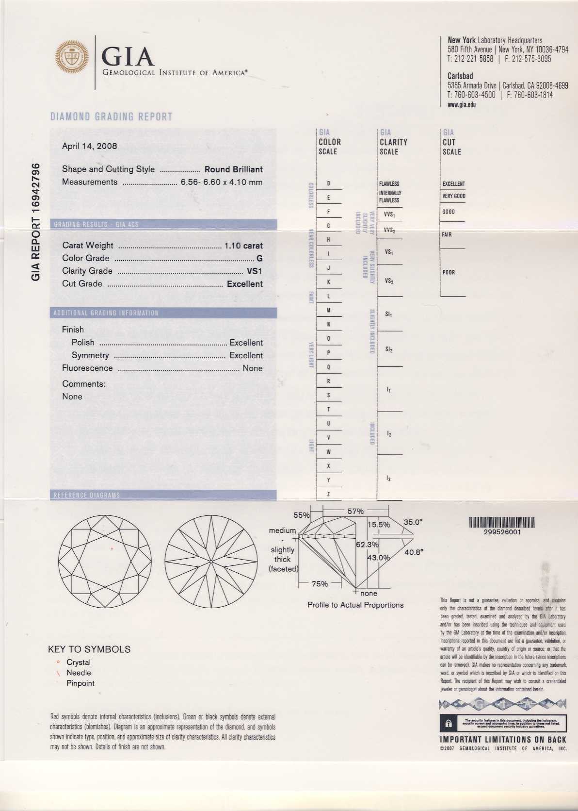 GIA 16942796 1.100 G VS1 Ex. Ex. Ex. None N 圓形 MED - STK